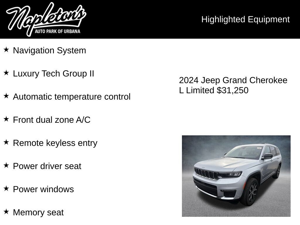 Experience the exceptional 2024 Jeep Grand Cherokee L Limited with the Luxury Tech Group II package. This commanding SUV combines bold style, advanced technology, and uncompromising capability to elevate your driving experience.