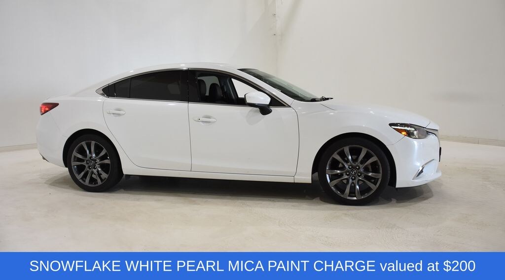 Experience the epitome of style and innovation with this stunning 2017 Mazda Mazda6 Grand Touring. This midsize sedan boasts a captivating Snowflake White Pearl Mica exterior, complemented by a spacious and well-appointed interior that caters to your every need.