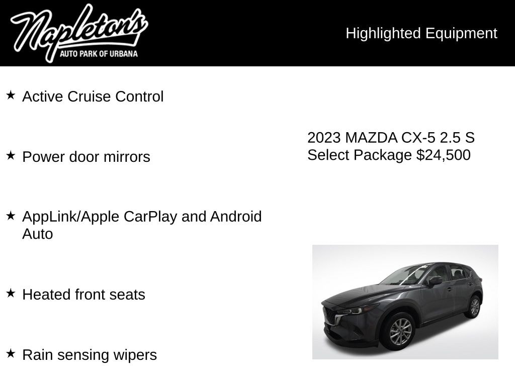 Whether you're tackling your daily commute or embarking on a weekend adventure, this 2023 Mazda CX-5 2.5 S Select Package is the perfect companion. Experience the exceptional craftsmanship, performance, and technology that make this SUV a true standout in its class.