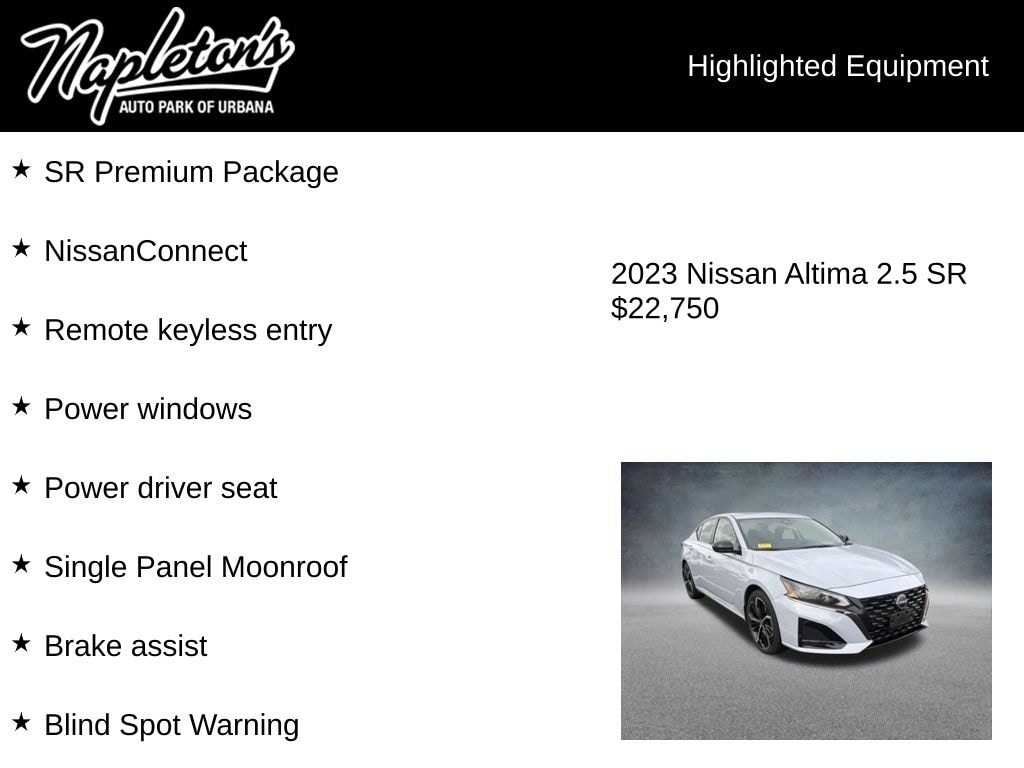 This 2023 Nissan Altima 2.5 SR with Premium Package is the perfect blend of style, technology, and performance. Experience the difference for yourself by scheduling a test drive at our dealership today. We're confident you'll be impressed by the exceptional value and driving dynamics this Altima has to offer.