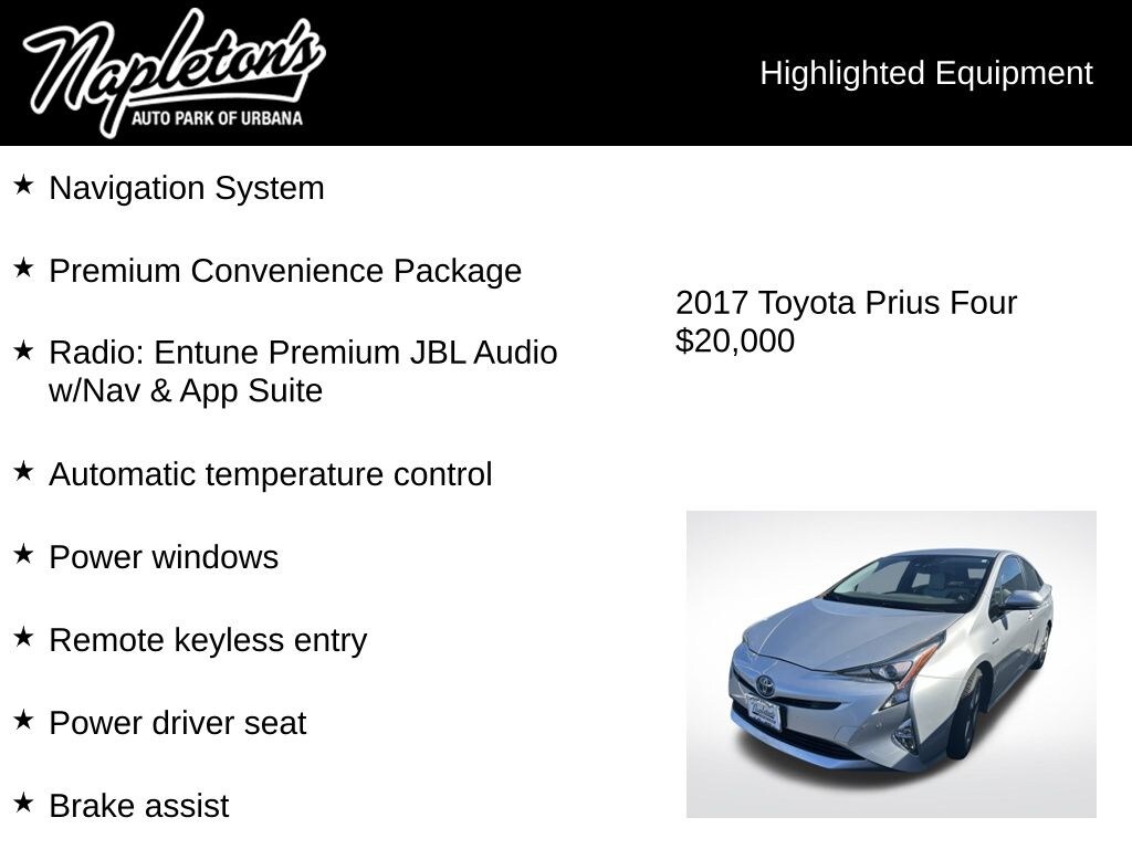 Experience the pinnacle of hybrid technology with this exceptional 2017 Toyota Prius Four Premium Convenience Package. Boasting a striking silver exterior and a meticulously crafted interior, this Prius is the embodiment of style, comfort, and advanced features that will elevate your driving experience.